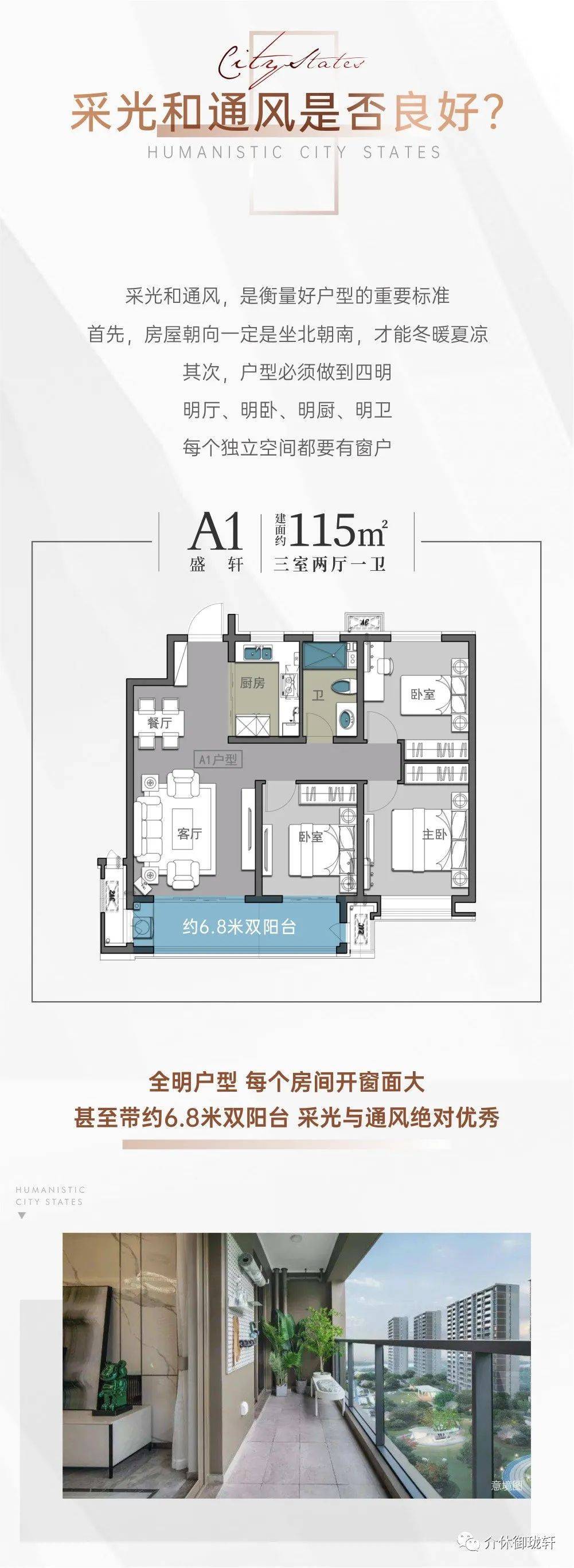 超越所有同类户型,建面约115㎡三房带约6.8米阳台,简直绝绝子!